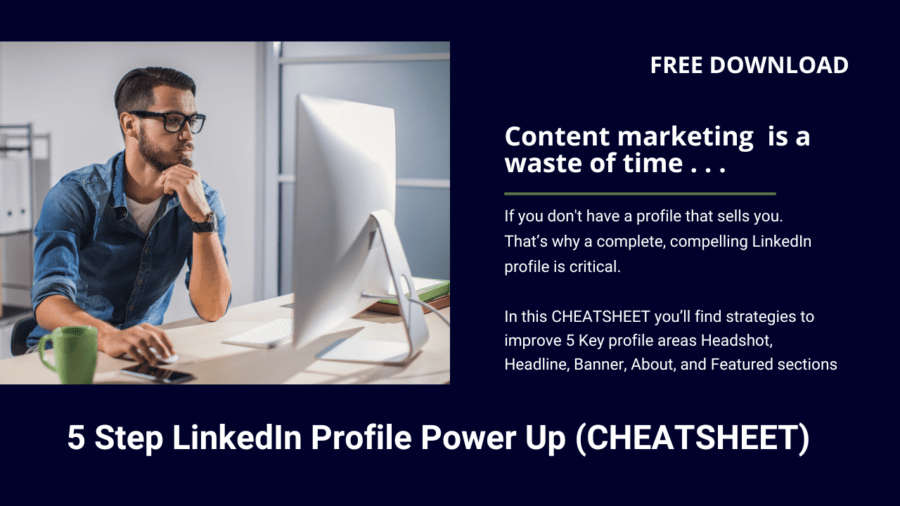 Content marketing is a waste of time, f you don’t have a profile that sells you. That’s why a complete, compelling LinkedIn profile is critical. In this CHEATSHEET you get: